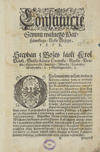Constitucie seymu walnego warszawskiego, roku Bożego 1578. - [Ed. B]. - [Kraków : Szarfenberger Mikołaj, około 1578]. - [12] kart, sygnowanie A-C⁴ ; 2°.