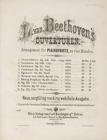 Fest-Ouverture zur : Weihe des Hauses Op. 124 : componirt im Jahre 1822 / [Beethoven]. - Neue, sorgfältig revidirte, wohlfeile Ausgabe. - Wien : Verlag von Carl Haslinger q.m Tobias, [między 1862 i 1868]. - 21 stron ; 32x25 cm.