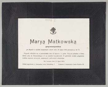 Zawiadomienie o pogrzebie na cmentarzu Łyczakowskim.