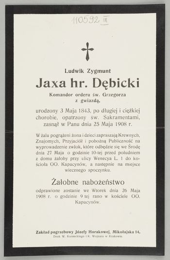 Zawiadomienie o nabożeństwie żałobnym w kościele XX. Pijarów (Kraków).