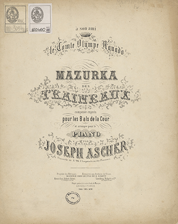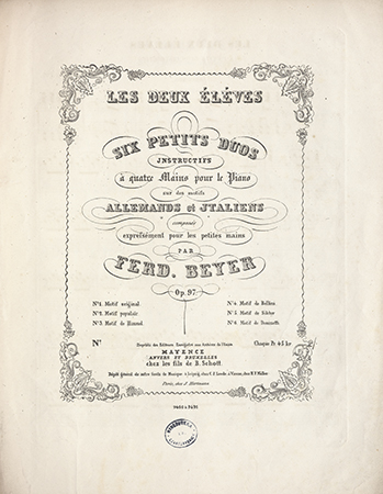 Na okładce dolnej: Catalogue des ouvrages pour le piano composés par Ferdinand Beyer publiés par Les fils de B. Schott à Mayence.