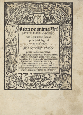 Libri de anima Aristotelis Philosophorum Peripatetic[a]e famili[a]e principis sub gemina translatio[n]e. - (Impressum Cracoui[a]e : in edibus domini Ioannis Haller, 1519). - [76, ostatnia czysta] kart, sygnowanie A-C4, D8, E4, F-I8, K-O4. ; 4°.